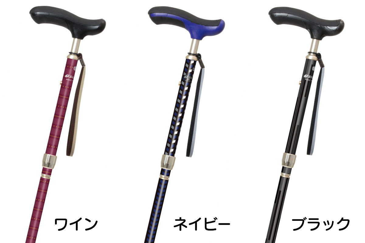 体重のかかる手の平部分にゲルがはいった、やわらかゲルグリップ。握り下部がスリムネックになり、握りやすい形状なのも特徴持ち運びしやすい、4つ折りタイプ