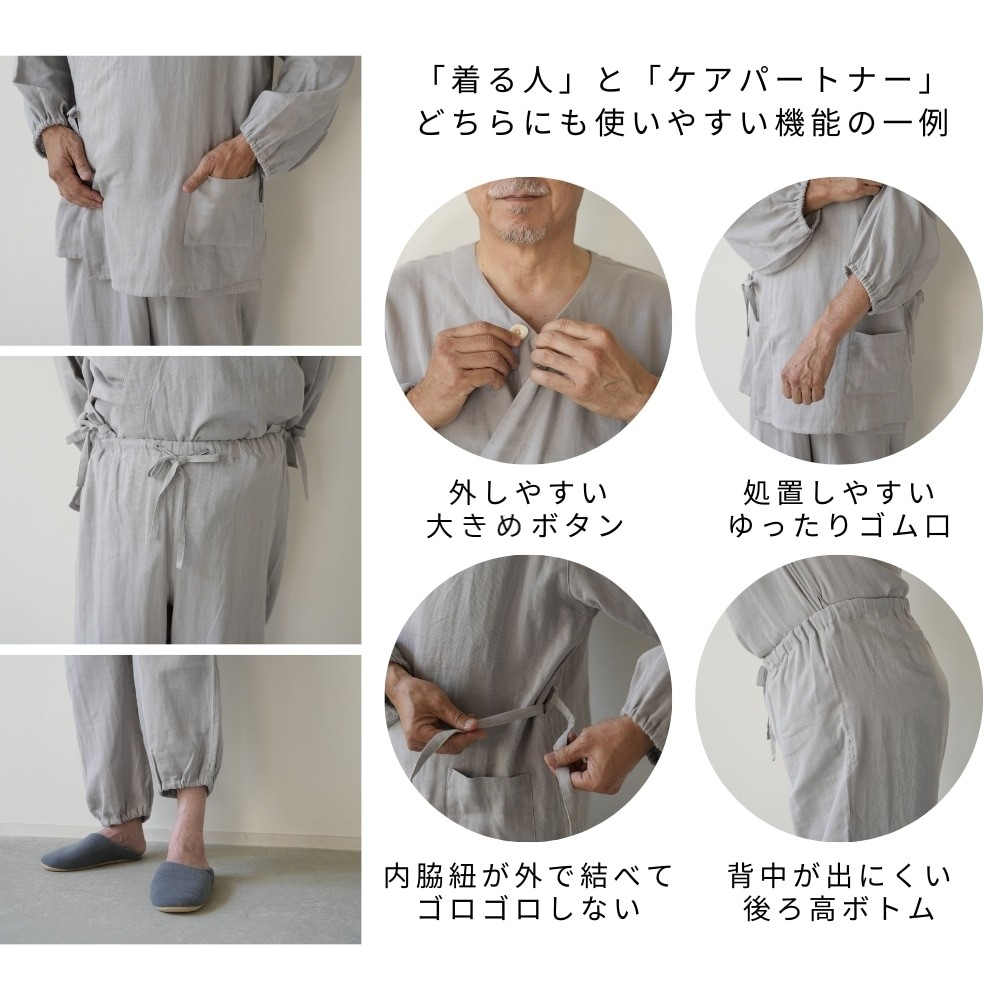 ご自身でのお着替え、ケアパートナー介助のお着替え時に快適に着用していただけるサイズです。