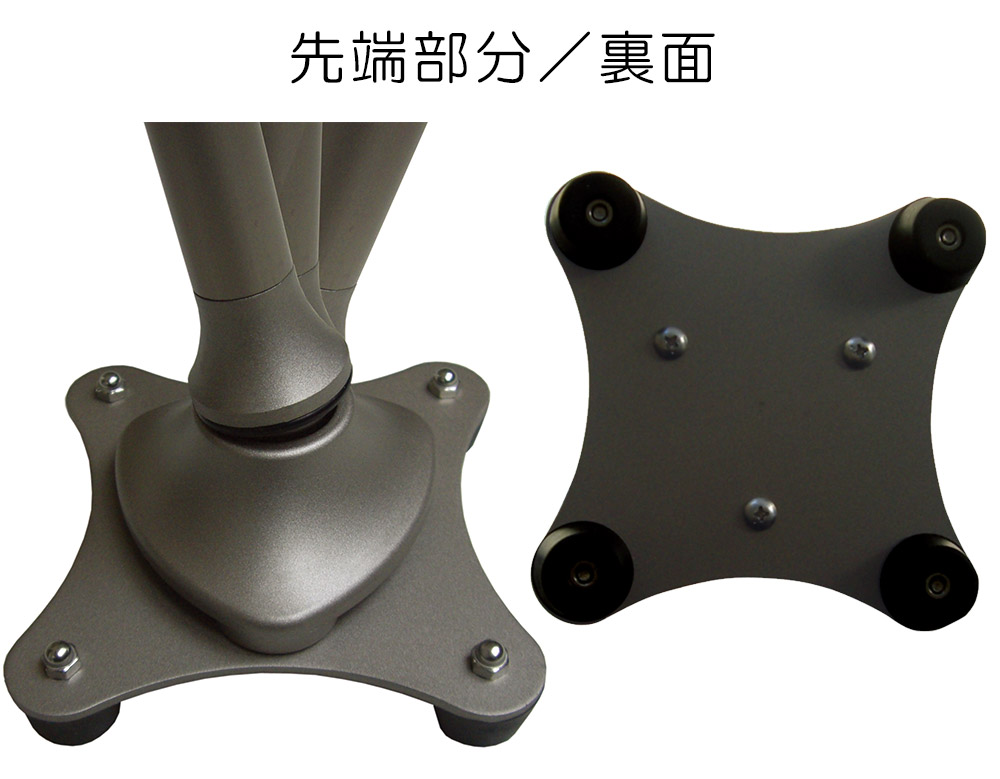 ・ 4つの先ゴムが付いた先端部分は、角度が約10度まで傾くので路面にしっかり接地します。