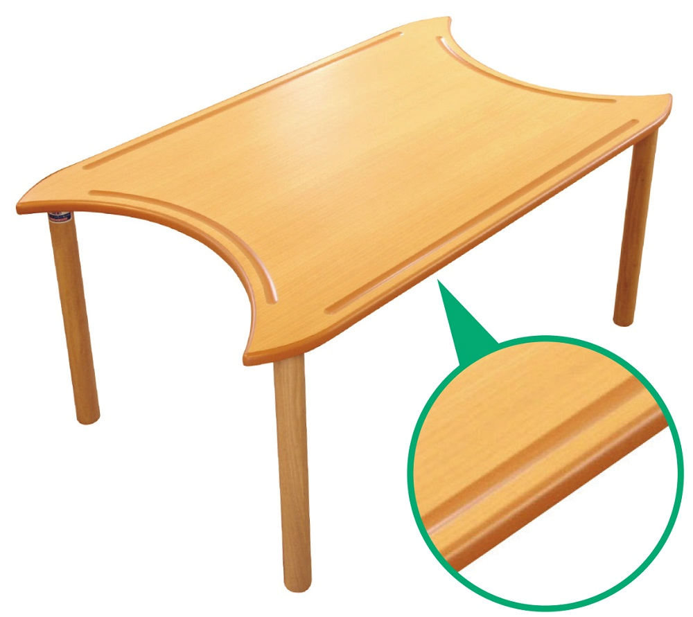 ・ テーブルの端に溝が切ってあり、溝に指をかけながら立ち上がれ、安心です。