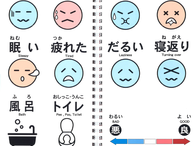 それゆえに、正しい意志伝達は日常生活の中では重要なことです。この絵本はアナログにこだわり場所や相手を選ばず、誰にでも簡単にご利用が可能です。