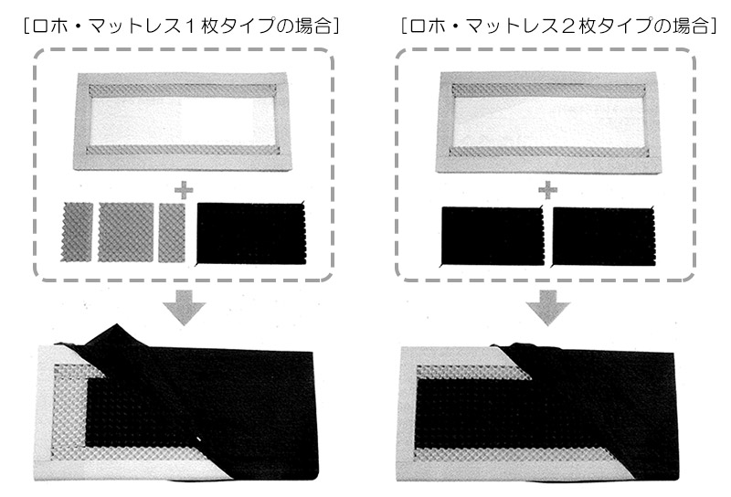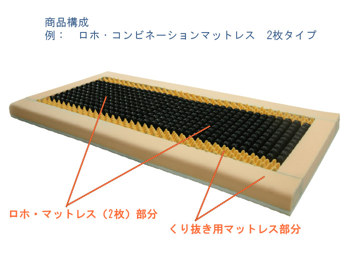 ・ ロホ・マットレス(1枚又は2枚)と、くり抜きマットレスの組み合わせ商品です。