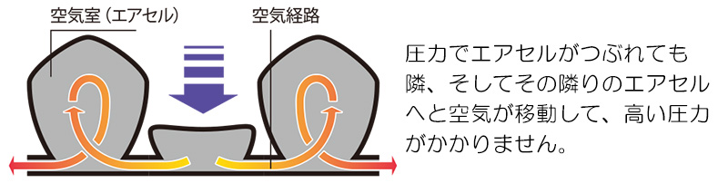 ・ エアアセル1つ1つが体の動きに合わわせて動くので皮膚組織織のズレや摩擦擦をを防ぎます。