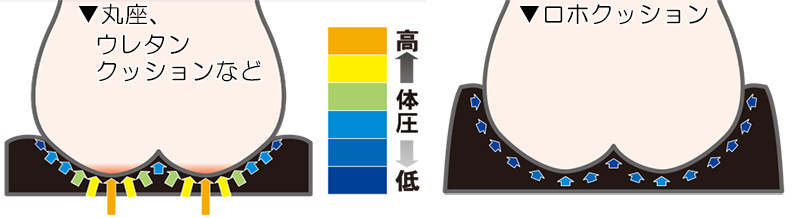 ・ ロホクッションは、多数の柔軟なエアセルの中を空気が移動して、優れた除圧効果を発揮します。