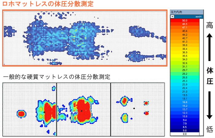 ・ ロホマットレスは、他の床ずれ防止用具と比較しても、高い体圧分散力を持っています。