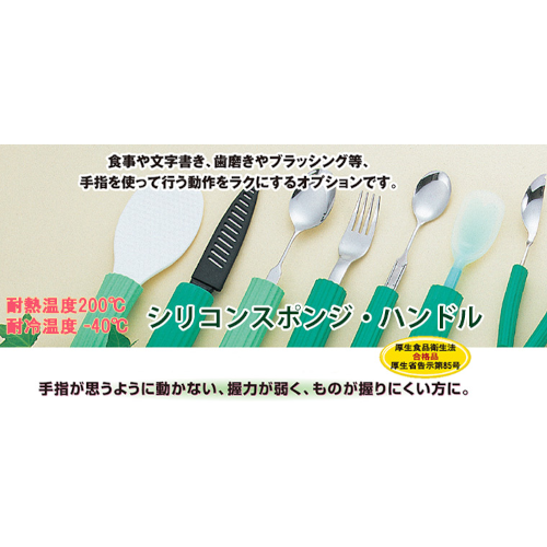 スプーン類、歯ブラシ、ボールペンなど、柄が細くて握りが困難なものにこのスポンジを取り付けることで、楽に柄を握ることができるようになります。煮沸消毒ができるので衛生的です。