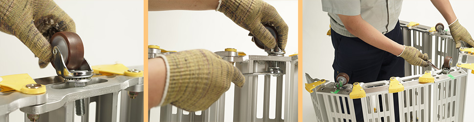 ・ バランスを取るために、1巻きのスロープビルドに対して、キャスターは最低3個取り付けてください。ご使用になる状況に合わせて、キャスターの数を増やしたい場合は「追加用 1個」をお求めください。