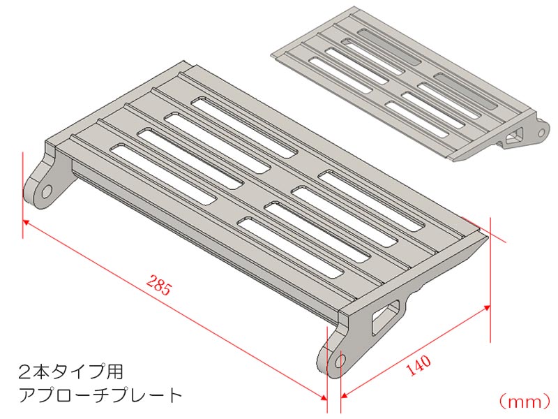 スロープの上階側には、アプローチプレートに加えてレール板1枚の設置が必要です。スロープ長は、その2枚を除いた長さです。